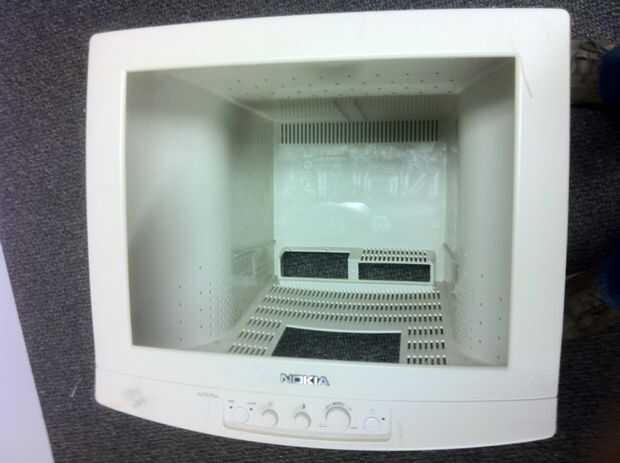 Ahora que tenemos ambas mitades de la caja liberado, podemos volverlos a montar juntos y comenzar a armar y decorar la maceta. Insertar los clips en la parte trasera hacia atrás junto con las ranuras en el bisel frontal y atornille que los dos tornillos de atrás en celebrar todos juntos. Ahora puede quitar todas las etiquetas o lo que no quieras Mostrar en tu jardinera.