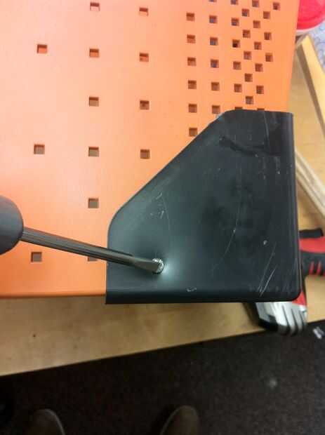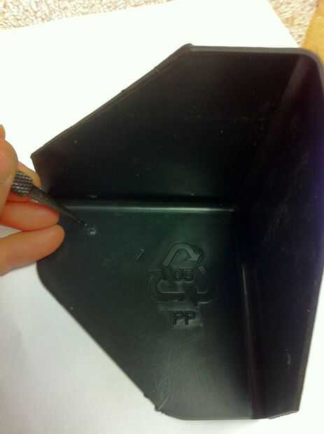 En este último paso, convertiremos a los plantados boca abajo para que la parte inferior quede mirando hacia arriba. Queremos unir los 4 soportes de esquina de 90 grados en las esquinas de la parte inferior del monitor para asegurarse de que no vuelque cuando agobiados con las plantas. Para hacer esto, comience utilizando un pequeño pedazo de metal y un martillo para perforar pequeños agujeros en las piezas de esquina. cada esquina se unirá por dos tornillos en los lados del monitor.