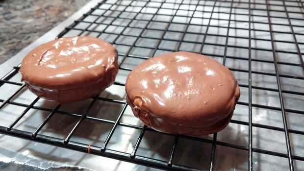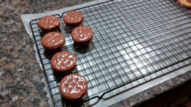 Con todas las cookies de tu ensambladas, es tiempo para recubrir con chocolate. Puede fundir el chocolate en el microondas, sólo tenga cuidado de no quemarlo. Solo me derrito en pequeñas cantidades para que sea más fácil. Antes de sumergir, instaló su estante de enfriamiento sobre una hoja de papel encerado para recoger cualquier goteo. Puede usar pinzas o guantes de preparación de alimentos para sumergir sus cookies de chocolate. Usted puede encontrar útil usar una cuchara a cuchara chocolate adicional sobre la cookie para asegurar una cobertura completa. Una vez que se cubre su cookie, Coloque suavemente en la bandeja de enfriamiento para permitir que el chocolate se endurezca. Después de enfriado, usted puede presionar suavemente debajo de cada galleta en la bandeja de enfriamiento para liberarlo. Lugar en un recipiente para más adelante o simplemente comen bien lejos... depende de usted!