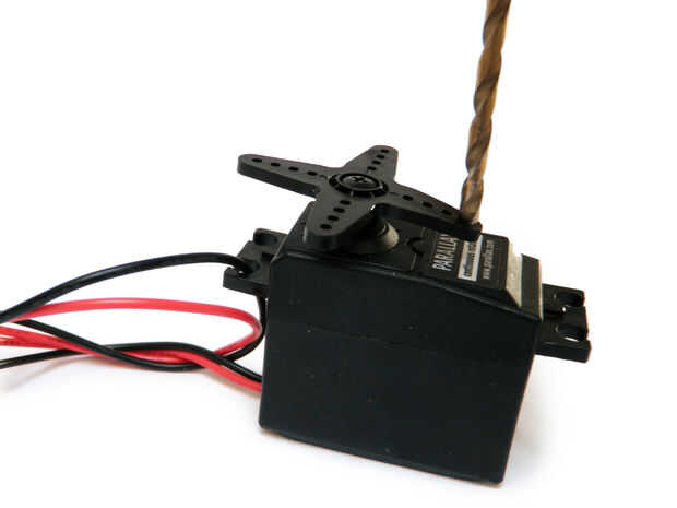 Agarrar uno de los servos. Ensanchar el agujero exterior en cada esquina del cuerno del servo con una 1/8 broca.
