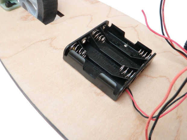 Coloque el soporte de la batería en el mismo lado del soporte del servo que los servos y los pivotes son zip atado.