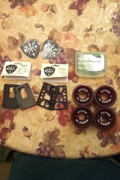 •Skateboard hardware, camiones, elevadores, rodamientos, cinta de agarre (transparente), ruedas, etc.. Todos los cuales pueden adquirirse en su tienda local de skate