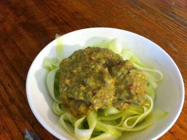 Crudivegana molleras de calabacín con salsa Pesto de albahaca (3 / 3 paso)