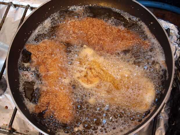 Cuidadosamente y colocar la carne preparada en el aceite caliente y cocer uniformemente los bancos les varias veces. Serán doradas en un par de minutos y listo!