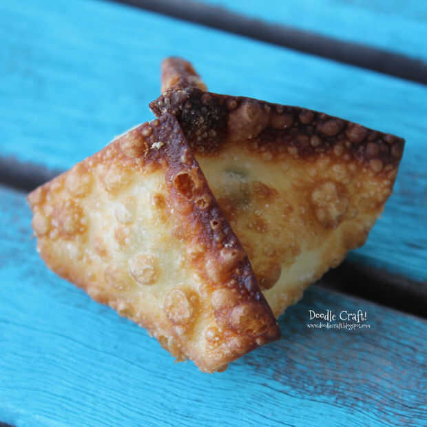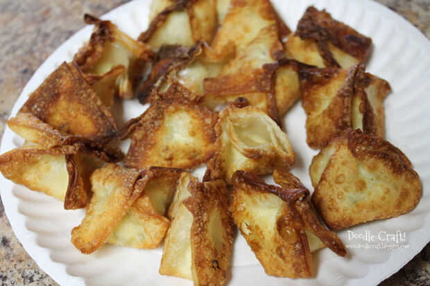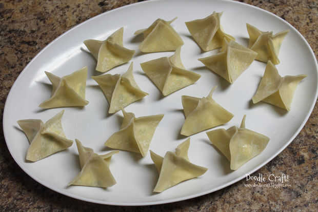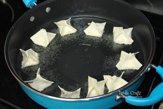 Coloque unos wantanes en la sartén a la vez. Ten cuidado, se cocinan rápido.