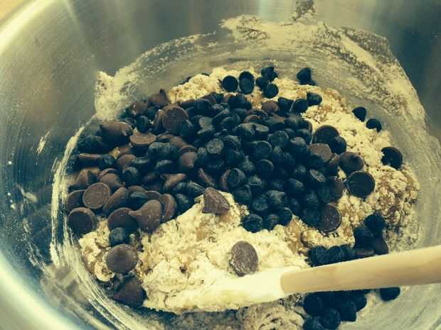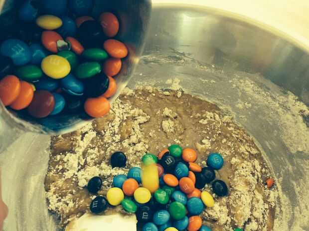 No dude en ser creativo con tus chocolates de elección. Puede utilizar virutas de chocolate con leche, trocitos de chocolate negro, chips de mantequilla de maní, menta chips de chocolate, M & M, blanco, chispas de chocolate, o cualquier combinación de los anteriores! Utilicé una combinación de chips de chocolate con leche grande y pequeños trocitos de chocolate negro. Luego hice un segundo lote con M & M