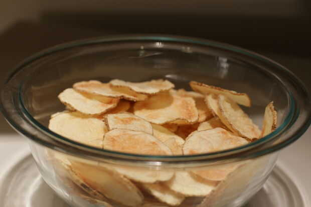 Buscando una alternativa sana, baja en grasa, fácil y deliciosa a comprado las patatas fritas fritas? No busques más!Paso 1: Lo que usted necesita 1 patata1 plato de microondas1 microondasSaborizante (opcional)Paso 2: Cortar la patata Cortar la patat
