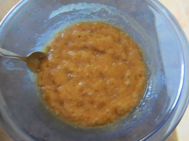 Cocer la mantequilla y azúcar en el microondas durante 2 minutos. (quitar y remover)