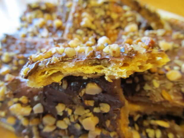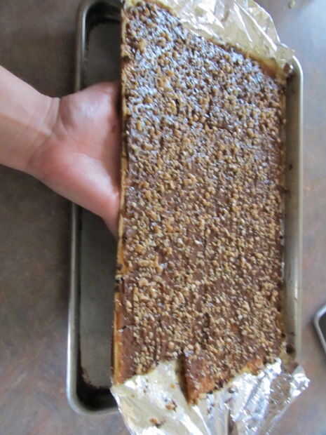 Retire la lámina entera de la cacerola y romper en pedazos separados.