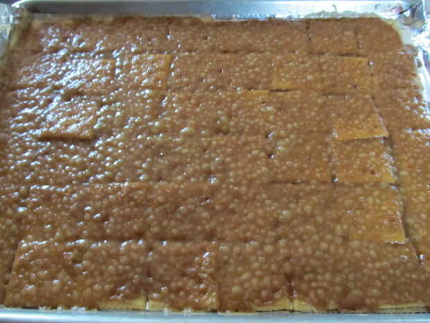Sacar las galletas del horno. (El caramelo debe ser muy burbujeante pero no quemado)
