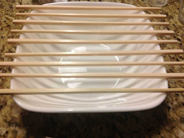 Paso 15: Saque su espátula y estantes, si no tienes una parrilla, línea pinchos o palillos encima de tazones de fuente para hacer parrillas.