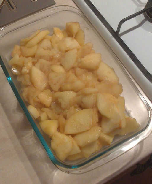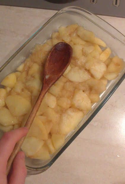 Como todas mis recetas, este crumble de manzana es fácil, porque no me gustan las cosas complicadas. La base es sólo manzana con una cucharada de harina, y el desmoche del streusel es mi penúltima tarta de manzana caramelo miga topping, mezclado con