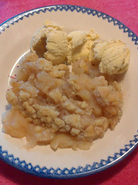 Puede comer caliente, o deje que se enfríe. Lo mejor es que el crumble de la tibia y el helado... ¡ Es increíble!