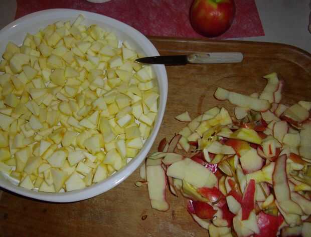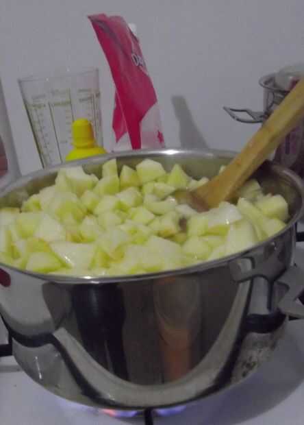 Comenzar por pelar las manzanas, dados los. Hervir con 1 taza de azúcar, añada algo de zumo de limón para evitar sus manzanas para obtener marrón. Deténgase cuando las manzanas estén tiernas.