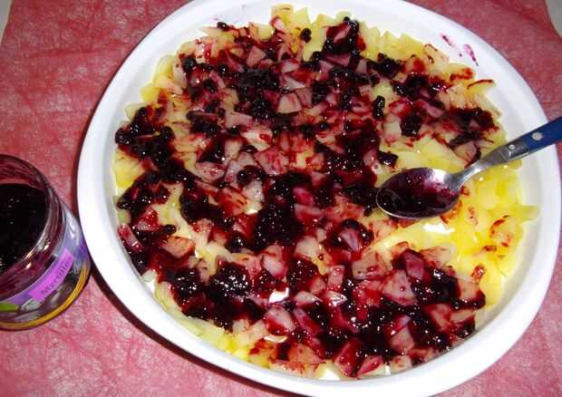 para la 2 º capa: extender mermelada de frutos rojos sobre