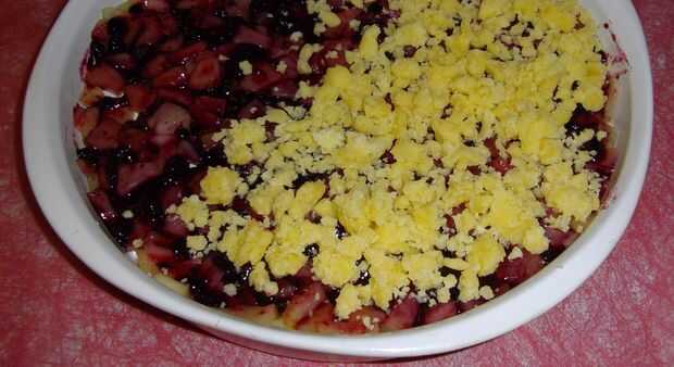 y la 3 ª capa: desmenuzar la masa de la abuela en la parte superior (tienes que usar tus dedos para éste).