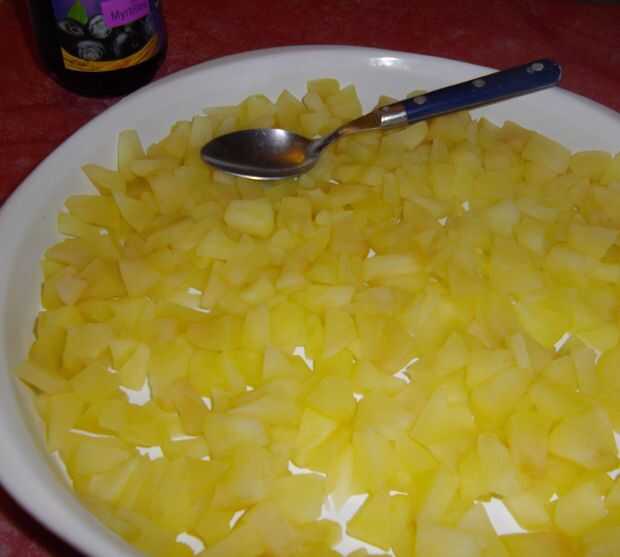 para la 1 º capa: difundir las manzanas en la parte inferior de la placa