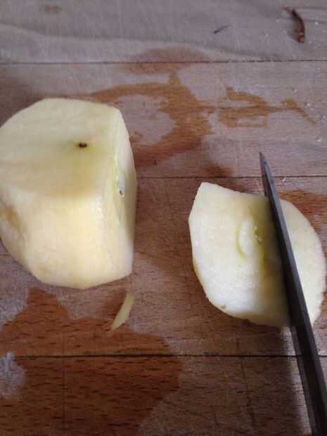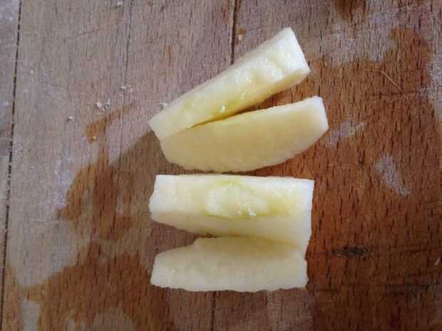 • En orden para su relleno no demasiado crujiente y suave debe cortar encima de la manzana muy pequeña.