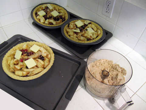 el crumble de manzana pera es una variación de invierno de la clásica tarta de manzana americana.Primero rodajas finas las manzanas y peras son lanzadas en Ron dulce con especias y las pasas de uva, entonces servidas en una tarta con un crumble de es