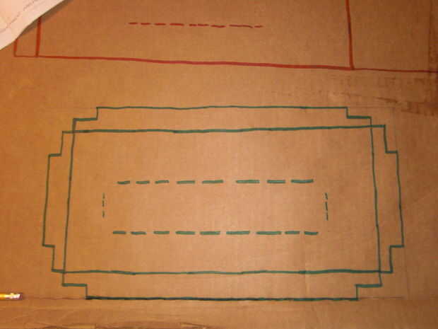 Dimensión y dibujar un rectángulo de 6'' x 12'' con el gobernante (T3) y lápiz (T4) en la hoja de cartón (S1). Dimensión y las aletas en los lados del rectángulo con la regla (T3) y lápiz (T4) en la hoja de cartón (S1). Mida y marque las ranuras en el centro del rectángulo con la regla (T3) y lápiz (T4). Coloque la almohadilla de corte (T1) abajo y corte a lo largo del contorno dibujado con el cuchillo (T2). En la almohadilla de corte (T1) cortar las ranuras con el cuchillo (T2). Doblar las aletas hacia abajo donde se encuentran el rectángulo.