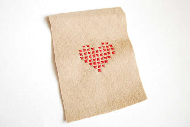 Para bordar en fieltro, me generalmente trace el patrón en papel de calco, luego coser a través de todo y rasgar el papel lejos. Sin embargo, fue un dolor enorme con estas puntadas x, así que ten cuidado si quieres probar este método!