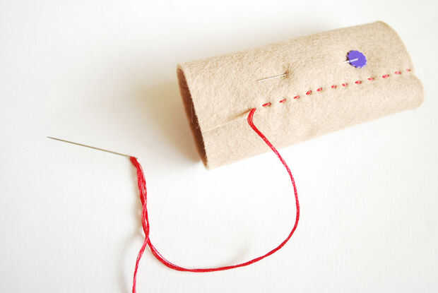 Coser un extremo del tubo cerrado. Es más fácil hacer estas puntadas un poco más pequeño.