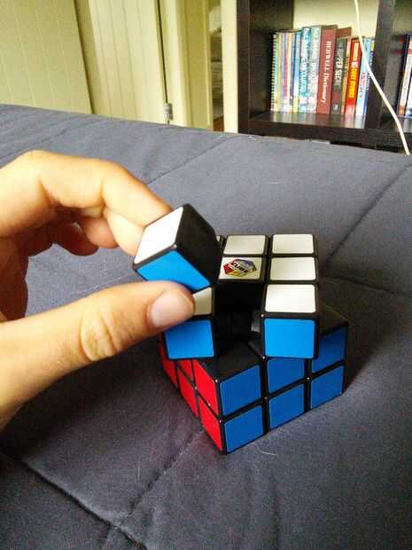 Para esto gire la parte superior (mostrada arriba) y extraer el bloque medio. luego hacer lo mismo en la parte inferior del cubo.