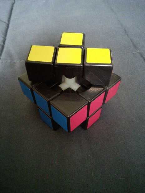 Gire sus maneras de la parte superior de cubos (mostrados arriba) y volver a la pieza media. lo mismo en la parte inferior del cubo.