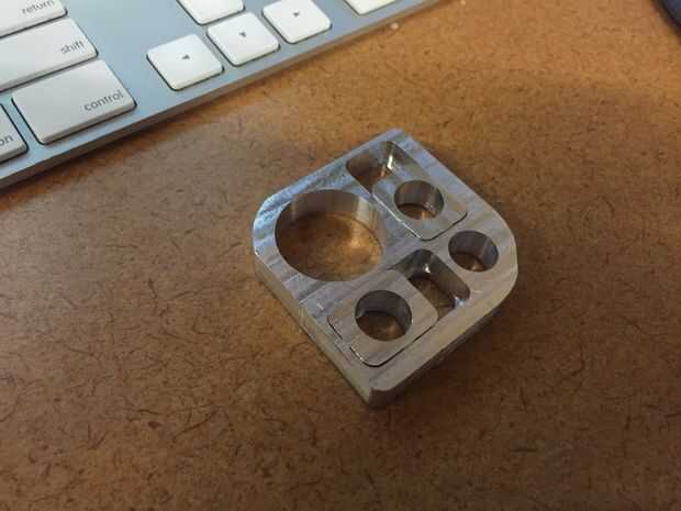 He añadido dos agujeros no roscados adicionales a los extremos de cada surco del deslizador. Estos agujeros adicionales permiten el acceso para el tornillo que controla la rotación del láser visible.
