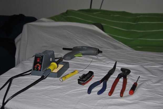 Si no tienes un soldador o un pegamento aún puede improvisar. Simplemente retire los alambres y gire alrededor de la otra para hacer una conexión y luego utilizar cinta aislante para aislarlos a. En cuanto a la pistola de pegamento puede utilizar acetona (quitaesmalte) para hacer el bono impreso piezas juntos.