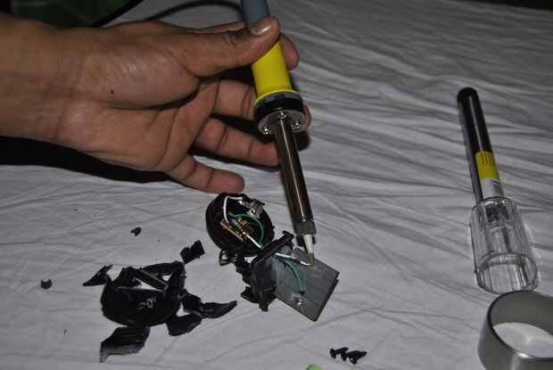 Opcional: Si no tienes acceso a un soldador puede simplemente cortar los cables y retire el aislamiento de goma gire alrededor de la otra y utilice cinta adhesiva para volver a aislarlos.