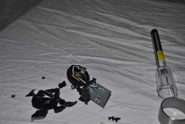 Con la pinza rotura abierta todo el plástico vivienda teniendo cuidado de no para romper el vidrio en los paneles solares. Una vez lo tienes separado puede marcar uno de los cables para que sepas dónde encajarla. Calentar el soldador y soldadura de las Naciones Unidas ambos cables. Tire todo lo de la carcasa de plástico y volver a soldar los cables en su lugar.