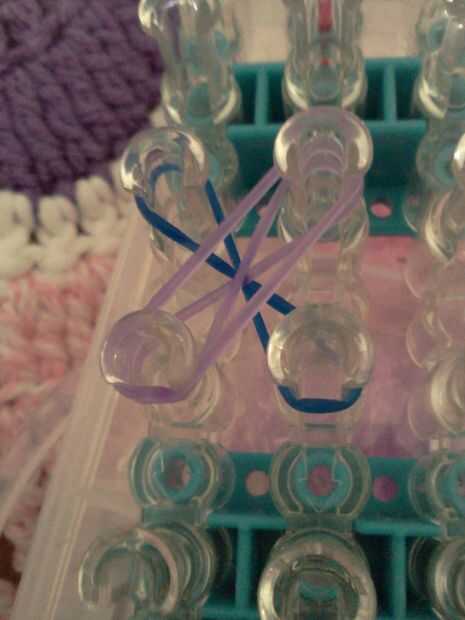 Que usando los trabajos de telar de cray-Z-telar de hoy, pero cualquier otro también...Paso 1: Tome su primer color de bandas de caucholo siento si la foto está al revésPaso 2: Colocar el primer color en cualquier lugar en el telar en un loco ocholo