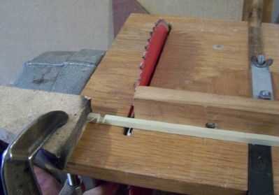 En la foto, la parada se establece para que las piezas de cortan forma la porción larga de la Cruz. Es un total de 1 1/2 pulgadas de largo o un poco poco más largo. El pedazo corto de la Cruz es un total de 1 1/8 pulgadas de largo. Estas mediciones se pueden ajustar un poco según gustos personales.