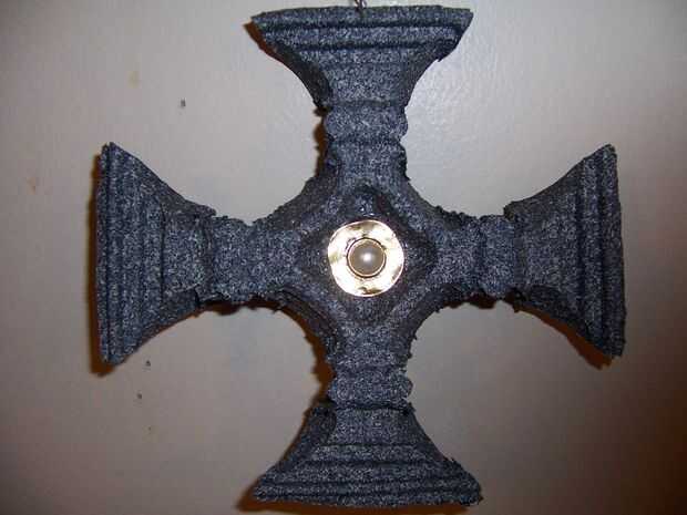 Ahora esas joyas, espejos, y lo que notas que tienes ahí de otra nave de proyectos y utilizan tu pistola de pegamento caliente para fijarlos. Incluso pude usar un anillo del oído huérfanos feo. Un gancho o cuerda en la espalda y decorar tu casa para Halloween.