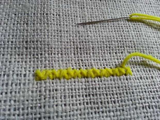 Preparada la aguja con el hilo amarillo,