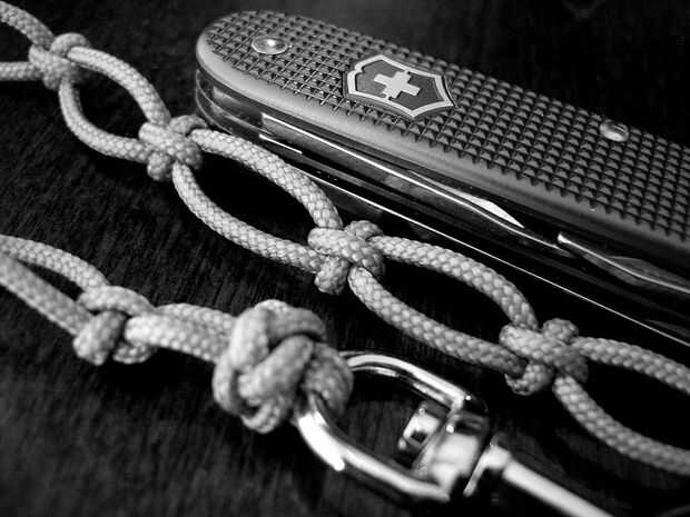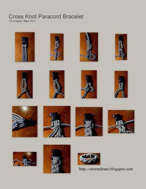 También puede utilizar variantes del nudo cruzado con pulseras y pulseras paracord. Versión doblada del nudo se muestra como un paracord brazalete y alternando con dos pares de hilos de la pulsera del paracord. Piezas sobrantes de paracord pueden utilizarse para tirones de la cremallera, dijes llavero paracord incluso Colgantes Cruz...