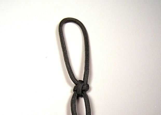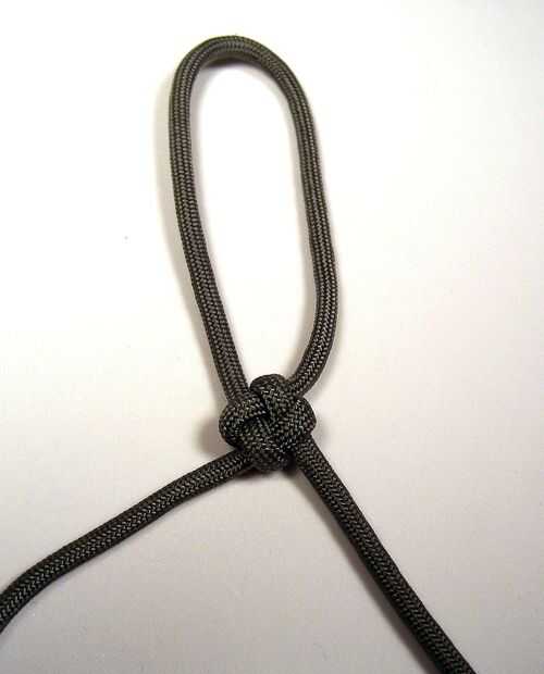 Apretar el nudo tirando con cuidado cada uno de los extremos de trabajo y extremos del lazo del cordón. Puede ajustar el tamaño del lazo de la cuerda por holgura de trabajo desde el final del bucle para disminuir su tamaño, o de los extremos del trabajo para aumentar el tamaño de los bucles. He mantenía el lazo en aproximadamente 2 pulgadas de longitud, para que una correa se ajusta a través de él, pero puede hacerlo más grande o más pequeño según su preferencia. También puede comprobar que los extremos de trabajo de la paracord son iguales en longitud en este punto y trabajan flojo a través del nudo hasta les si es necesario.