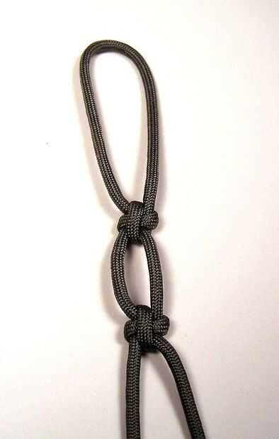 Ahora puede hacer el siguiente nudo en la cuerda, al igual que el primero. Después de atar el nudo siguiente, trabajar la holgura a través del nudo hasta que haya cerca de 1 pulgada de espacio entre ellos, y luego apriete y continuar con el siguiente nudo. Tenga en cuenta que los nudos parecen diferentes en cada lado, delantera y trasera, y hacer la cada frente a la misma manera, o les alternan si usted elige.