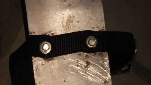 Vista de la correa del dedo del pie unida a la placa giratoria.