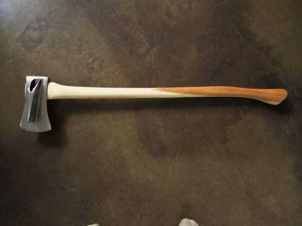 Después de pulir, afilar todas las hojas en la cabeza de hacha con una lima de diamante. Luego monta la cabeza de hacha en un nuevo mango de hickory y aceite de oliva se usa para tratar la madera de la manija. Nunca he usado aceite de oliva en un mango de hacha antes pero parece trabajar bastante bien.