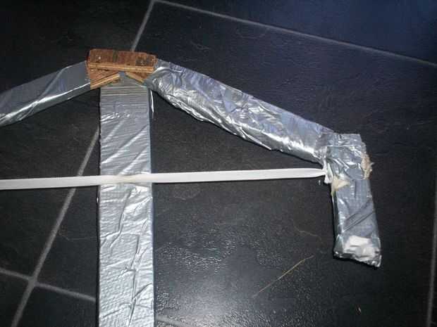 funda de munición: voltee la ballesta acabada y tome las 2 tiras de madera y colóquelos a partir desde el inicio del arco y clávelos luego el pedazo restante pasado va en la parte superior y uñas como weel
