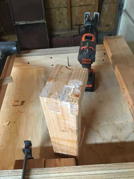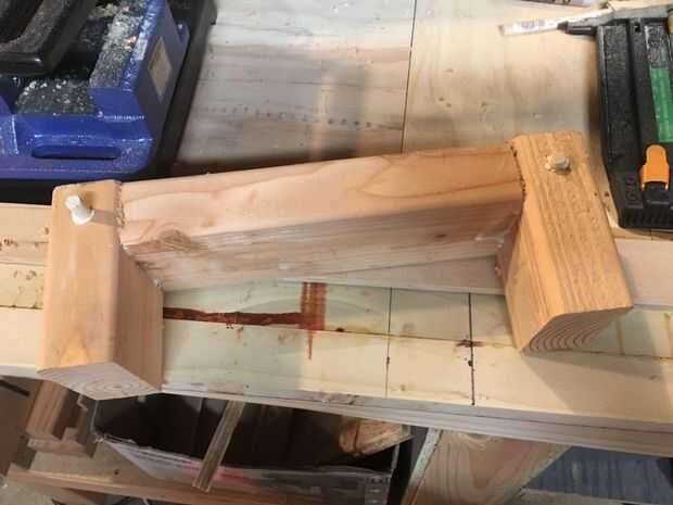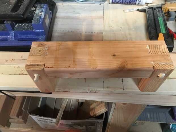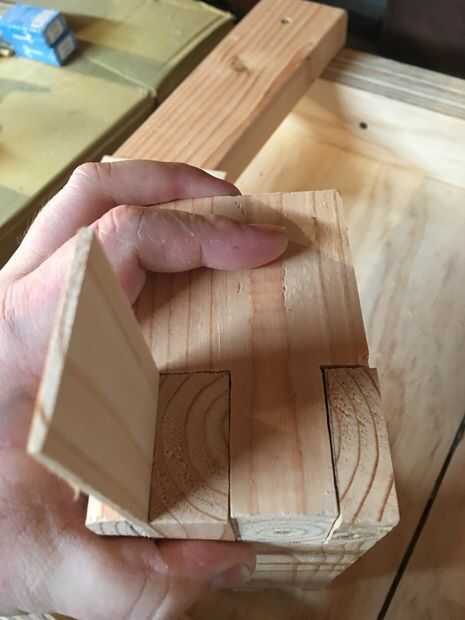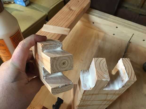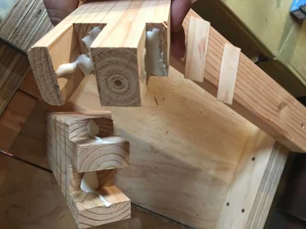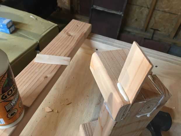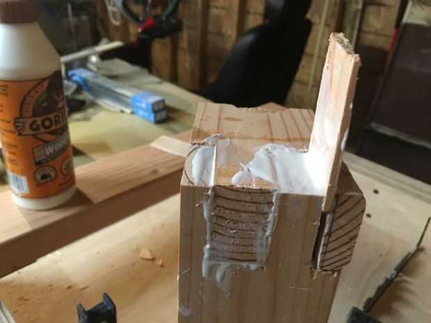 Así que usé mi sierra y trineo cortar una cuña muy delgada para caber en el agujero que dejó. Después de que yo estaba contento con la anchura y cómo todo encaja había pegado las articulaciones, después poco más de pegamento en la cuña y utiliza mi mazo para conducir.