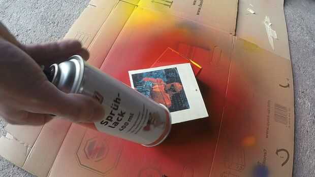 Para un acabado y para hacer los colores más brillantes, rocía un poco de laca de spray sobre la pieza de madera.