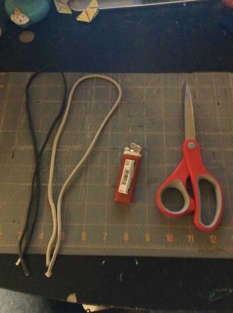 Necesita uno o dos colores de paracord, un encendedor, que buena música y un par de tijeras. No importa la longitud de su paracord pero he encontrado por cada pie que obtienes una pulgada en el fob.