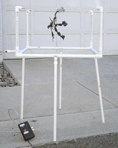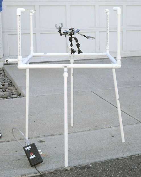 Puede localizar exactamente el punto donde se cruzan las vigas colocando un hilo elástico a los cabezales ópticos. Para algunos objetivos, que es donde el punto y del prefocus su cámara. Las fotos de abajo muestran a un hombre Lego, caer a través de las vigas. Lo dejó unos pies por encima de las vigas y se puede ver que ha caído 6-8" por debajo de las vigas en el tiempo que tomó para que las vigas que se rompa, el relé de cierre y la cámara de fuego. Esta cámara fue una Nikon DSLR que probablemente tiene retraso de obturador pequeño cuando preenfocado y expuestos. Los resultados dependerán de tu cámara.