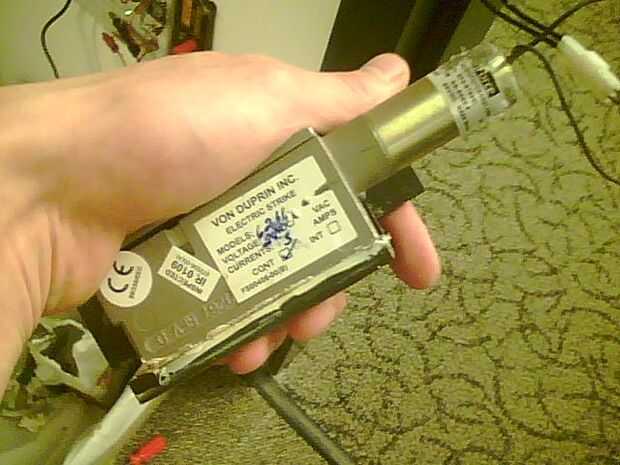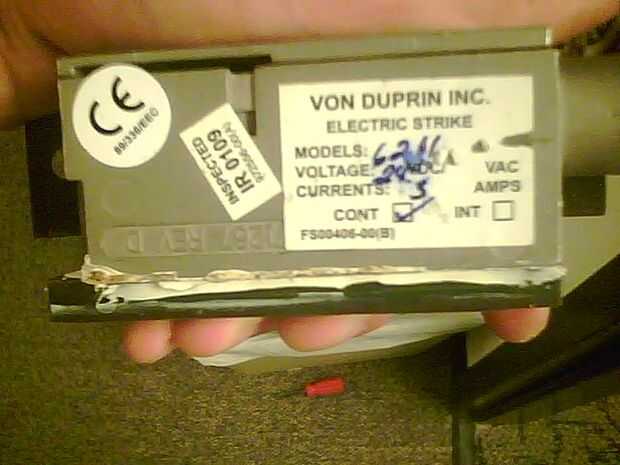 La huelga de la puerta dice necesita 24V para operar, pero he podido pasar con un 19V 7.9A alimentación tenía. La huelga de la puerta era polarizada, así que asegúrese de que tener la polaridad correcta!