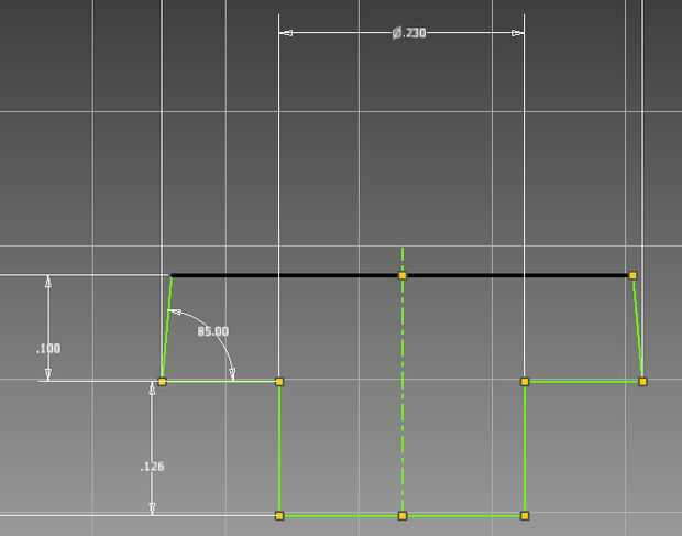 En primer lugar, cree un nuevo archivo de parte en su elección de unidades. Se utilizará pulgadas (debido a las unidades de la impresora 3D de la escuela está en pulgadas...) para todas mis partes. Crear un nuevo dibujo y esbozar el perfil de su anillo. Estaremos usando la herramienta de revolución, crear tan sólo un lado del perfil. Además, crear una línea de centro y el radio interior de su anillo de la dimensión. Se ha añadido una forma cónica al lado de mis anillos, para ambos efectos y para ayudar a ocultar la combinación correcta. La forma no importa, como tienes un general ' t ' forma. La ' t ' forma mantiene los anillos en los lugares correctos y evita que la cámara interior de resbalamiento.