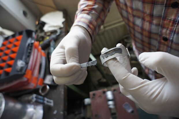 (tenga cuidado de no conseguir los guantes entre los anillos cuando se les desliza sobre unos a otros)