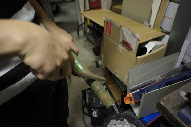 Encontramos un amortiguador viejo que encaja exactamente dentro del tubo que hemos tenido.